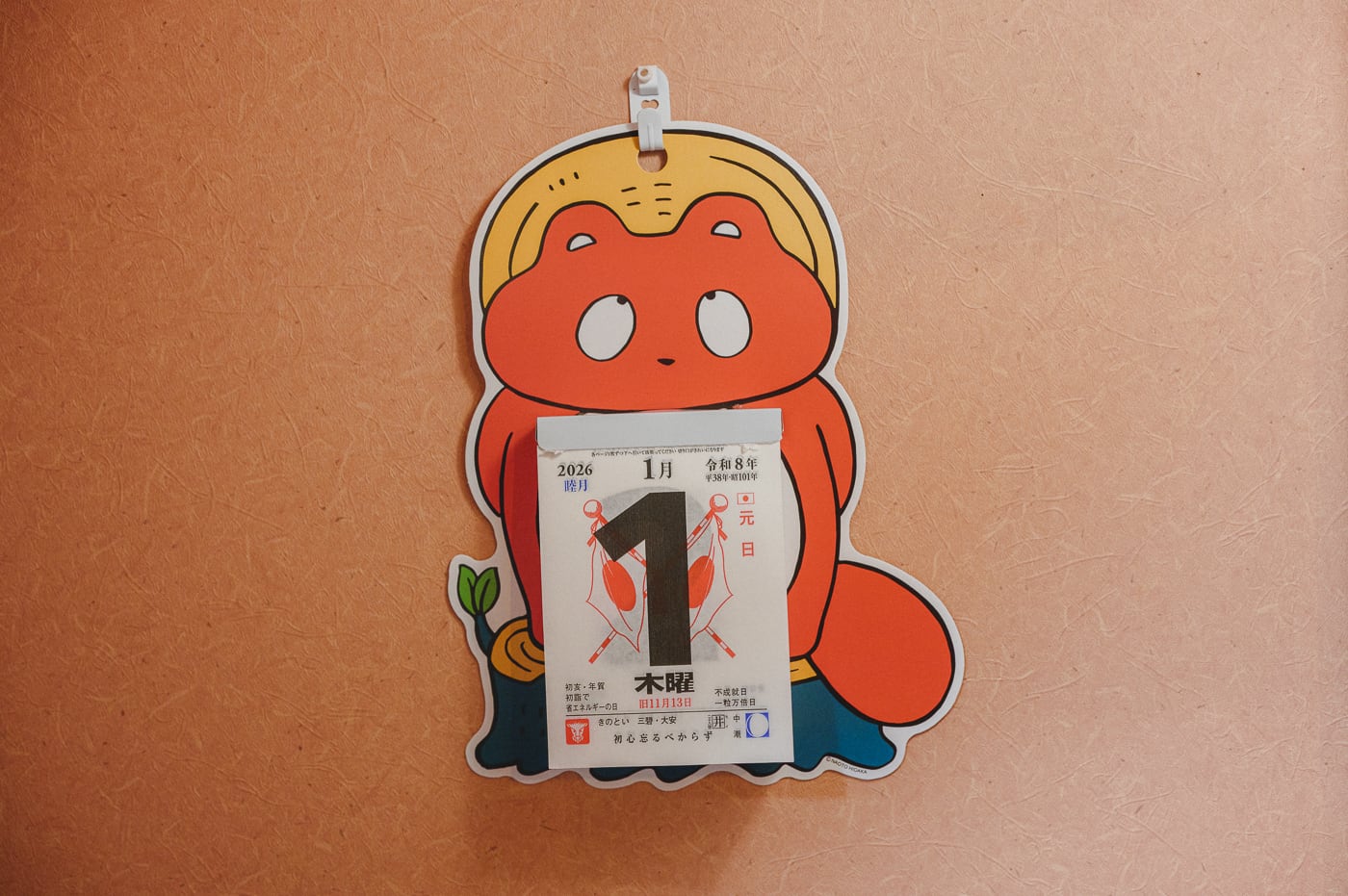『ぼんやり子だぬき』の壁掛け日めくりカレンダー。