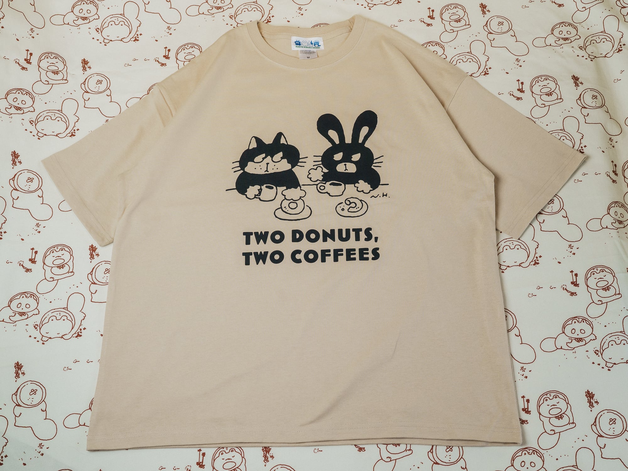 Tシャツ『TWO DONUTS, TWO COFFEES』ベージュ